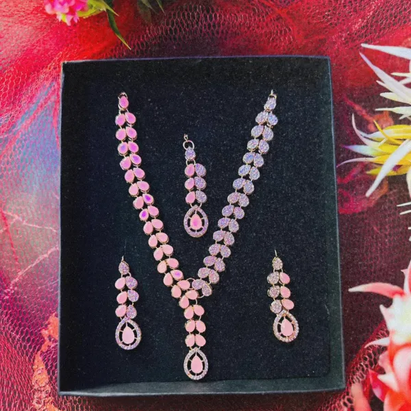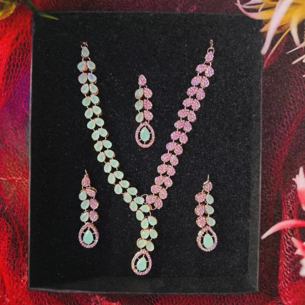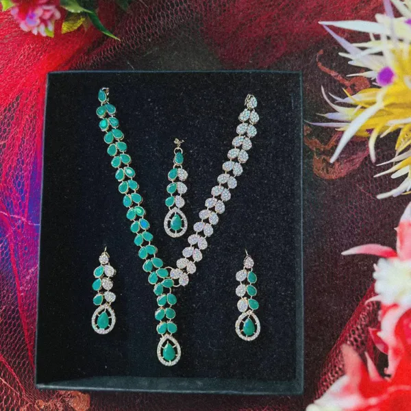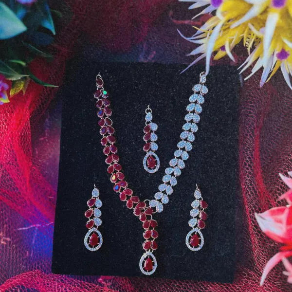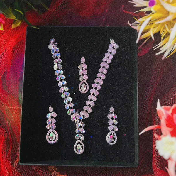 + Free Shipping (on RS 2000 order)Aurora Crystal Statement Set is a breathtaking necklace and earrings collection crafted with shimmering multi-faceted crystals in a refined silver-tone finish. The cascading leaf-inspired design with elegant teardrop accents creates a radiant sparkle from every angle. Perfect for bridal wear, receptions, and formal evening events, this set delivers a glamorous and sophisticated look.