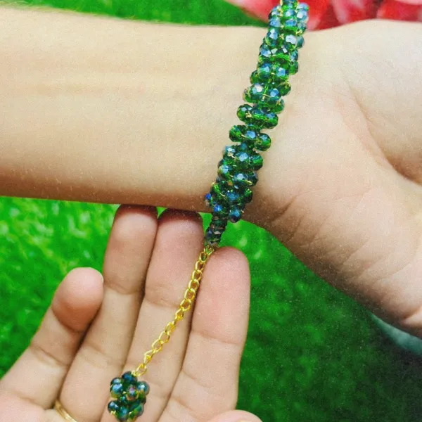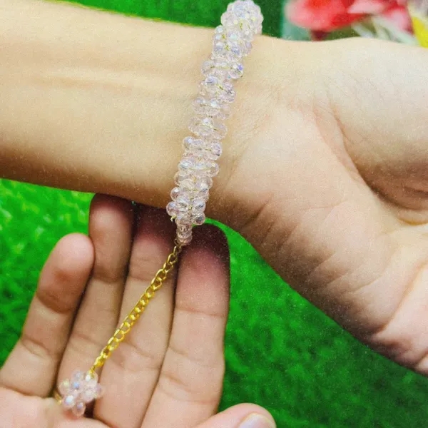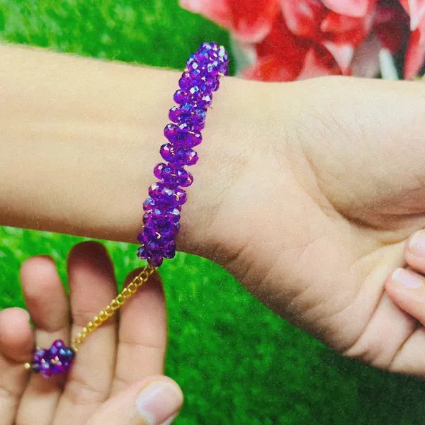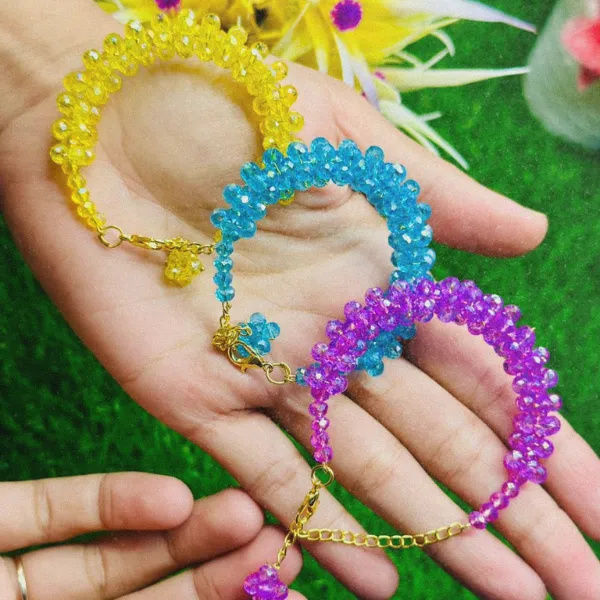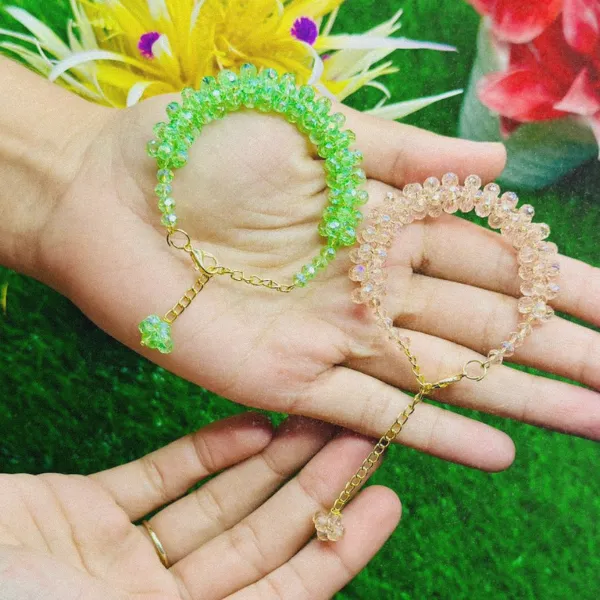 + Free Shipping (on RS 2000 order)This elegant crystal beaded bracelet features shimmering orange beads with a delicate hanging charm, giving a graceful and eye-catching look on the wrist.