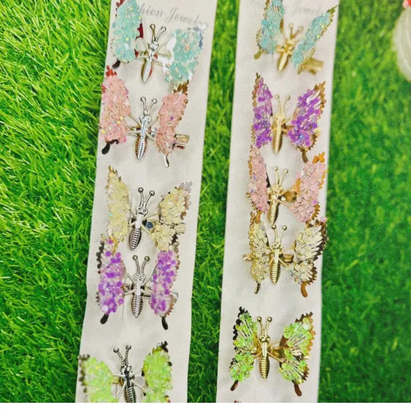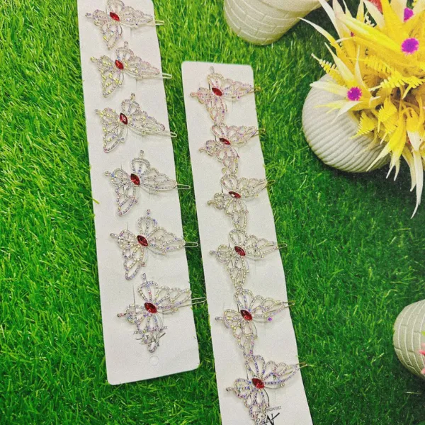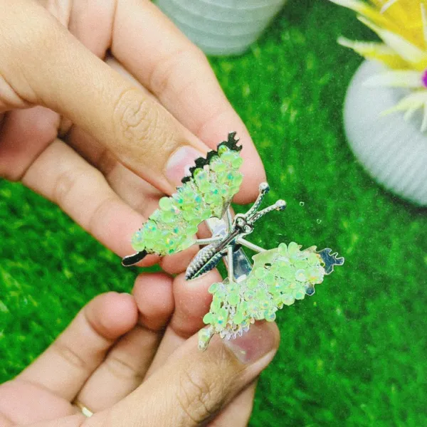 + Free Shipping (on RS 2000 order)A charming butterfly hair clip embellished with sparkling crystals to add a playful yet elegant touch to your hairstyle. Perfect for casual looks, parties, and cute everyday styling. This butterfly clip is designed with a sturdy metal base and detailed crystal embellishments that catch the light beautifully.