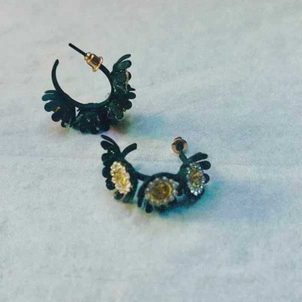 + Free Shipping (on RS 2000 order)Elegant white floral hoop earrings featuring delicate enamel petals and sparkling crystal accents that give a classy, modern look. Lightweight and stylish, perfect for daily wear or special occasions. These earrings come with a premium enamel floral design, shiny crystal embellishments, lightweight, comfortable feel, and a trendy hoop style that enhances both casual and formal outfits.