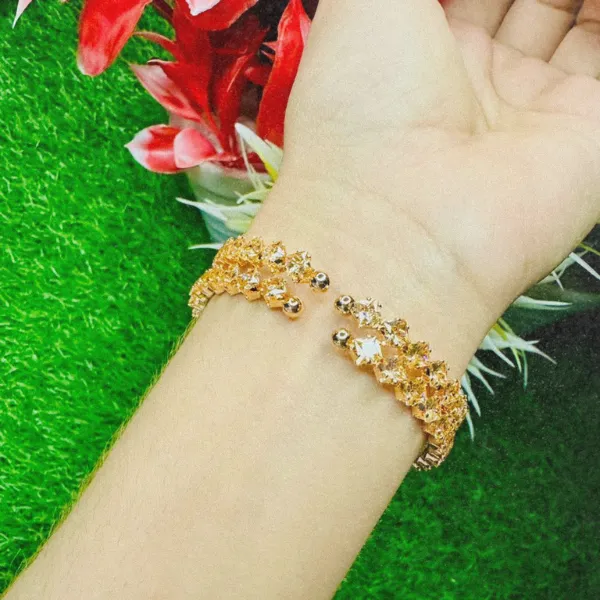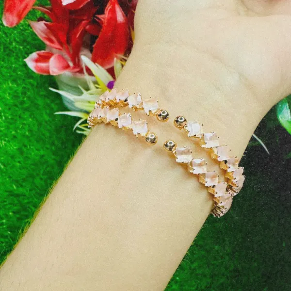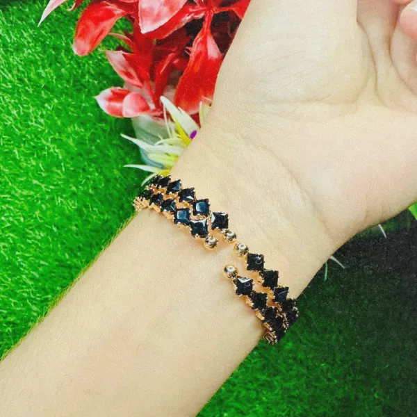 + Free Shipping (on RS 2000 order)This elegant gold-tone crystal bracelet features sparkling square-cut stones arranged in a stylish double-layer design for a luxurious look.